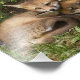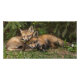 Dois kits de raposa vermelha são pintados se amontoando na sombra de árvores verdes.
