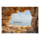 Kizkalesi (Castelo de Maiden) - um castelo numa pequena ilha perto de Mersin, na costa sul da Turquia. Esta é a vista através de uma janela dentro das ruínas da antiga cidade de Corycus no continente. [Nossa fotografia e designs de viagem estão disponíveis como presentes para a casa, cartas, quebra-cabeça de serra, arte de parede e muito mais]