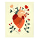Diese fesselnde Illustration zeigt ein stilisiertes anatomisches Herz, das mit botanischen Elementen verflochten ist. Das Herz ist in Rot- und Orangetönen dargestellt, mit detaillierten Arterien und Venen. Auf der rechten Seite des Herzens wächst eine leuchtend rote Blume, die an eine Mohnblume erinnert, während auf der linken Seite ein grüner, belaubter Zweig hervorragt. Die Kombination aus organischen und anatomischen Elementen schafft ein einzigartiges und auffälliges Kunstwerk, das sich perfekt dazu eignet, jedem Raum einen Hauch von naturinspirierter Eleganz zu verleihen.