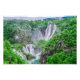 Pintura a óleo de grandes cachoeiras no Parque Nacional dos lagos de Plitvice, Croácia. Cascata de duas grandes cachoeiras no verão. Paisagem de cascata de floresta nas montanhas.