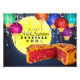Imagem do céu noturno com uma lua de cheio amarela brilhante, lanternas coloridas e um bolo de lua. Imagem do bolo de lua da Wikipedia, licenciada em http://creativecommons.org/licenses/by-sa/3.0/deed.en. ~O trabalho derivado inclui cor, contraste e filtros.