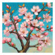 Dit ontwerp toont een prachtige tak van een bloesemboom in volle bloei tegen een heldere blauwe lucht. De delicate roze en witte bloemen, die langzaam uit hun knoppen ontwaken, symboliseren de frisheid en nieuwheid van de lente. De levendige kleuren en het zachte licht creëren een gevoel van vreugde en vernieuwing, vastgelegd in een impressionistische stijl.
