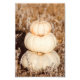 A arte apresenta três elegantes abóboras brancas com tons de terra neutros empilhados uns sobre os outros aninhados nos galhos de prata de um campo de queda de cobre amontoado. Arte original do Featherfall Studio.
