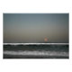 Uma imagem atmosférica do início da noite em The Outer Banks, na Carolina do Norte. A lua brilhante subiu acima do horizonte à medida que ondas baixas vão indo para a costa.