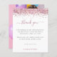 Foto Cintilante Cor De Rosa 16, Obrigado. Um alternativo de 4,5 pol x 5,6 pol com preço inferior. Disponível em um STOCK DE CARTÃO SEMI-GLOSS 110 lb, que é a opção padrão (mais espesso para convites), OU um STOCK de PAPEL THINNER FINISH 80 lb FINISH (ideal para gabinetes). Os envelopes são um extra opcional e são ligeiramente maiores que o tamanho da placa. Depois de sua celebração, aqui está uma maneira elegante de dizer todos aqueles obrigados importantes que você é. Um brilho sujo em rosa borda o topo, e Obrigado está em um roteiro elegante com pestanas. Personalize facilmente as palavras para si. Na parte de trás troque sua foto favorita do seu partido de orientação para retratos.