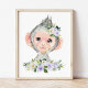 Adicione os retoques finais ao berçário do seu bebê ou ao quarto do seu filho com estas impressões de arte lindas! Design apresenta macaco, flores de aquarela púrpura e verde.