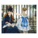 Manet The Rail impressão. Pintura a óleo na canvas de 1873. Uma das pinturas mais famosas de Edouard Manet, The Rail ou The Gare Santo-Lazare (Le Chemin de Fer), retrata o modelo Victorine Meurent sentado antes de uma cerca de ferro com um livro aberto e um filhote dormindo no colo. Ao lado dela está uma garotinha com um vestido branco bonito com uma fita azul grande. O vapor branco de um trem em movimento pode ser visto atrás da cerca. Um belo exemplo da sensação realista de Manet de iminência do modernismo. Um presente de excelente para fãs de Manet, pinturas famosas de filhotes, realismo francês e arte moderna.
