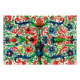 Adaptado de um manuscrito medieval, uma ilustração pergaminho de vasos, flores e pergaminhos em tons brilhantes de joias.