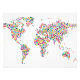 Mapa do Mundo feito de estrelas coloridas e semitransparentes sobrepostas, sobre fundo branco.