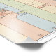 Este design apresenta um mapa de domínio público do mundo com os fusos horários padrão para cada região codificada por cores. Há vinte e quatro fusos horários exibidos, com fusos horários não padrão de meia hora também listados. O mapa mostra todos os principais países do mundo: mostra os continentes da Ásia, África, América do Norte, América do Sul, Europa e Austrália. O fuso horário de UTC (Universal Time Coordination,/tempo universal coordenado) é exibido no centro do mapa, enquanto fusos horários anteriores são mostrados à esquerda e fusos horários posteriores à direita.