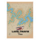 Lago Travis Texas belo e velho poster de viagens de mapa de safra.