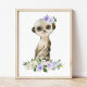 Adicione os retoques finais ao berçário do seu bebê ou ao quarto do seu filho com estas impressões de arte lindas! Design apresenta flores meerkat, cor d'água púrpura e verde.