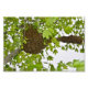 "Honey Bee Swarm" de Catherine Sherman. Um enxame de abelhas produtoras de mel agarra-se a galhos de uma árvore de maple num bairro de Kansas City no início de maio, que vi na minha rota habitual de caminhada na minha vizinhança. Ouvi as abelhas antes de as ver. Eles eram fazer som muito alto zunido, como uma máquina de paisagens ruidosas. Caminhei até a árvore onde vi milhares de abelhas voando por aí e milhares mais agrupadas em uma árvore. Na foto, tirada no dia seguinte, as abelhas estão calmas e amontoadas nos galhos das árvores, fazer sem som. No terceiro dia, as abelhas desapareceram, sem deixar sinal, mas uma abelha de mel solteiro voando em volta da árvore como se perguntasse "Para onde todos foram?" O encantamento é o modo de reprodução de uma colônia de abelhas. No processo de enxaguamento, uma colônia solteiro se divide em duas ou mais colônias distintas. As Abelhas de Mel não são agressivas neste estado, já que não têm colmeia para proteger. Na maioria dos climas, as abelhas produtoras de mel ocidentais (apis mellifera) enxagam na primavera e no início do verão, quando há abundância de flores florescentes das quais se obtém o néctar e o pólen. Em resposta a essas condições favoráveis, a colmeia cria de uma a duas dezenas de rainhas novas. Assim como as palcos pupais dessas "rainhas filhas" estão quase completas, a velha rainha e cerca de meio a dois terços das operárias adultas deixam a colônia em um enxame, percorrendo alguma distância para encontrar um novo local adequado para construir uma colmeia, como um tronco de árvore oca. Os escoteiros bem-sucedidos regressarão para relatar a localização de locais de nidificação adequados às outras abelhas. No local temporário, o cluster determinará o local final do ninho com base no nível de entusiasmo das danças das abelhas-exploradoras. É invulgar se um enxame se acumular durante mais de três dias numa paragem intermédia. Na velha colônia, as rainhas filhas emergentes lutarão entre si até que haja apenas uma rainha sobrevivente.