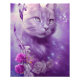 Gato adorável Gato roxo com flores e borboletas