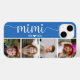 Proteja o telefone da Mimi com este adorável caso iphone 14. É tão fofo com suas 4 fotos de seus netos. Mimi está em uma fonte moderna, porém clássica, em branco sobre fundo azul. Você tem que pegá-lo. É perfeito para o seu aniversário, Dia de as mães, Dia dos Avós até o Natal.