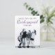 Planejar um casamento é um momento empolgante para qualquer um, decisões importantes de fazer como quem será sua dama de honra é apenas uma delas. Estes na moda, cartões mínimos são uma forma excelente de lhes pedir e dar-lhes-ão uma foto de guardar o tesouro para sempre. O cartão apresenta sua foto favorita de você e deles, e o texto diz "VOCÊ SERÁ MEU BRIDESMAID" com e é personalizado com o nome deles. Os estilos, tamanhos e cores da fonte de texto podem ser alterados clicando-se no link adicional personalizado após a personalização.