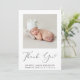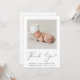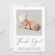 Mínimo anúncio de nascimento de uma bebê ou de um bebê, e cartões de agradecimentos com a foto de seu recém-nascido e "Obrigado" em um roteiro elegante e contemporâneo com uma batida cardíaca. Personalize com seu nome de cheio, data de chegada e estatísticas de nascimento em uma simples tipografia moderna. No verso, adicione uma foto adicional e o seu obrigado personalizado e a mensagem de anúncio.