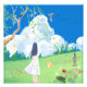 A minimalist morning landscape that radiates peace and freshness. At the center, a soft golden sun rises above gentle green hills, casting warm light across a calm meadow. The sky transitions from pale peach to light blue, with a few delicate clouds drifting slowly. Clean lines and a limited color palette emphasize simplicity, while the balanced composition evokes a quiet sense of renewal and hope at the start of the day.
