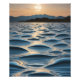 An artist's rendering of gently rolling waves in the light of dawn, combining a minimalist approach with the natural beauty of the ocean. The contrast between the soft tones of the water and the warm glow of the sun creates a calm and serene atmosphere, ideal for conveying peace and reflection.