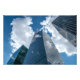 Original photograph, looking up at a modern steel and glass skyscraper in midtown Manhattan.