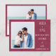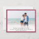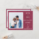 Foto moderna do casal Casamento Salve a carta de aviso de data com informações do site, fonte branca, impressão de estoque texturizado de burgundy design.