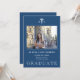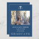 Modelo de cartão de anúncio de formatura da escola de enfermagem, azul e branca, moderno e elegante, com sua foto e texto personalizados.