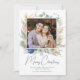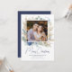 Foto moderna Manuscrito de Natal Feliz Boho Cartões de natal Floral apresenta uma aquarela cor-de-água estrutura floral boêmica de inverno com eucalipto, pampas e rosas em tons de azul e marrom cercando sua foto favorita com o texto "Feliz Natal" e sua mensagem personalizada abaixo na tipografia moderna do roteiro. Elaborado por ©Evco Holidays www.zazzle.com/store/evcoholidays