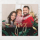 Esta bela e moderna etiqueta de vinho espumante preto, vermelho, verde, branco e dourado de Natal mostra a sua fotografia e o sentimento "alegria" na caligrafia manuscrita em meio a ouro e bagas vermelhas e verde de Natal e o ano em fundo negro. Fácil de personalizar com seu próprio texto.