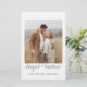 Orçamento Personalize esta Cinza Escura e uma Foto Branca Simples e Elegante De Dois Lados Salve o Convite de Data com sua mensagem e detalhes. Este convite chic inclui a tipografia de escrita manuscrita na moda moderna e elegante para a celebração do Casamento Especial a Ser.