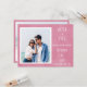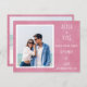 Foto moderna do casal Casamento Salve a placa plana do cartão de anúncio de data com informações do site, fonte branca, impressão de estoque de papelão cor-de-rosa design.