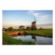 Impressão de fotografia de um moinho de vento próximo a uma pequena vala com uma ponte na borda de um grande campo no campo holandês ao pôr do sol em Aarlanderveen, Países Baixos.