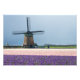 Foto impressão de um moinho tradicional, engatinhado, atrás de um cheio de campo de flores cinzentas e roxas, em um primavera dia perto dos jardins de Keukenhof, na região de Bulb, na Holanda.
