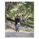 Design fotográfico de um motociclista solitário desfrutando do desafio da trilha florestal. com