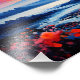 Esta pintura vibrante captura a beleza impressionante do Monte Fuji banhado no brilho quente de um pôr do sol. O pico de neve contrasta com o céu feroz, criando uma imagem impressionante e memorável.