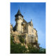 Foto impressão de andorinhas que voam ao redor do castelo de Montfort medieval construído nos penhascos de calcário ao longo do rio Dordogne, Vitrac, França.