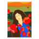 Abstrato, com mulher no campo de papoila, vestindo vestido floral ultramarino-azul. Papoila pintura de retrato de mulher temática. Trendy, moderna, elegante design para decoração domiciliar e decoração de parede.