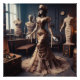 O estilo vitoriano Steampunk ganha uma reviravolta nesta design de uma múmia de terror gótica com elegante glamour de Hollywood com seu cabelo preto afiado, chapéu de cima e engrenagens de relógio.