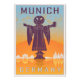 Munich Vintage poster in orange and blue textured background with skyline in white