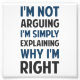 Eu não estou discutindo... Estou apenas explicando por que estou certo! Perfeito para aquelas ocasiões em que sua explicação racional está sendo mal interpretada como argumentativa. O que é provavelmente o tempo todo.