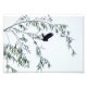 Um pássaro negro voa do seu galho selvagem. Uma imagem silenciosa e solitário perto da silhueta.