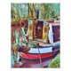 Uma design de arte bonito de um barco estreito ancorado em uma parte pacífica do canal.