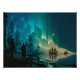 Navios tradicionais de navegação numa costa norte sob as luzes Nortes (Aurora Borealis) à noite. Arte genérica inspirada por paisagens norte-americanas e escandinavas. Minnesota, Michigan, Maine, Nova Inglaterra, Canadá, Escandinávia, Suecia, Noruega, Finlândia, Gronelândia, Árctico.