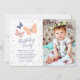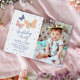Este moderno convite de aniversário de fotos traz uma nova reviravolta para um tema clássico com seu design minimalista de borboletas em tons de lata, pêssego e tons de marinho profundos. Colocado contra um fundo branco nítido com bolinhas dispersas, o layout parece leve, na moda e divertido sem ser muito doce. Uma "festa de aniversário" escrita à mão define o tom correto, enquanto o padrão de coordenação da borboleta no fundo gravatas a aparência juntos sem esforço. Perfeito para pais que amam estética limpa ou festas temáticas não específicas com um toque de mira e talento inspirado na natureza.