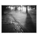 Uma bela fotografia branca e negra de uma cena noturna romântica no lado leste do Central Park em Nova Iorque. Um casal caminha de mãos dadas à luz dos semáforos e luzes noturnas sobre a calçada da calçada que encaixa o Central Park.