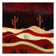 Cena de paisagem abstrato de um deserto com saguaro cactus, escova esfregada, colinas e estrelas em tons de vermelho, creme, bege e texturas ousadas.