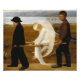 O Anjo Ferido de Hugo Simberg. O Anjo Ferido, 1903, é uma pintura do pintor simbolista finlandês Hugo Simberg. É uma das obras mais reconhecíveis de Simberg, e foi votada a "pintura nacional" finlandesa numa votação realizada pelo Museu de Arte Ateneum em 2006. Numa votação semelhante realizada em 2013 pelo Nórdico Moneta, foi votada em segundo lugar, o mais importante. Dois rapazes encharcados carregar anjo numa maca. A asa do anjo foi ferida, e há uma bandagem sobre os olhos. Esta pintura de Hugo Simberg, que votou na obra de arte mais amada da Finlândia, fala ao espectador de inúmeras formas - há tantas interpretações como há espectadores. Essa é provavelmente exatamente a intenção do artista, como quando ele exibiu a pintura pela primeira vez houve simplesmente um longo trajeto onde deveria ter havido um título. Simberg levou vários anos para terminar esse trabalho. Os primeiros elementos podem ser encontrados num namorando de esboços, de 1898. Outros esboços e fotografias refletem as várias fases da composição. O anjo continua a ser sempre a figura central, e a cena da pintura é um lugar real em Helsínquia. A pintura tornou-se um sucesso imediato, e Simberg recebeu o Prêmio de Estado por seu trabalho.