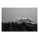 Foto em preto e branco do Monte Rainier. No primeiro plano estão linhas de árvores, e na base de Rainier estão colinas. O vulcão coberto de neve tem uma grande e interessante nuvem por trás. Para alguns, parece uma renderização antiga de uma nave espacial, para outros é uma forma humana. Como é a nuvem para você? Imagem Copyright ©2023 Kimberly J Tilley. zazzle.com/store/developingnature