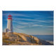 Farol Cove da Peggy em costas rochosas da Nova Escócia, Canadá contra céus azuis no dia ensolarado.