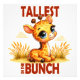 Um trocadilho engraçado com uma girafa bonitinha gentil e feliz sorrindo e alegremente sentada cercada por plantas. Design de cartum para t-shirts e outros roupas e mercadorias para bebês, bebês, crianças, raparigas, rapazes, adolescentes e adultos que adoram girafas, trocadilhos e beleza.