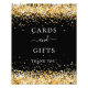 Uma cor preta de fundo. Decorado com faíscas douradas brilhantes. Com o texto: Cartões e presentes, obrigado!